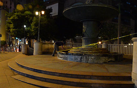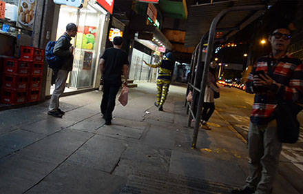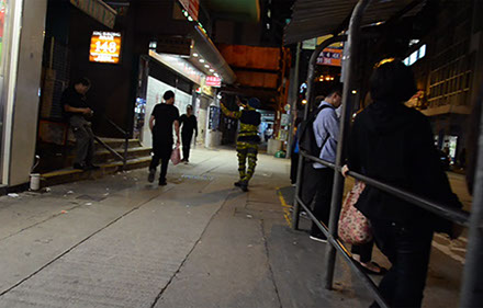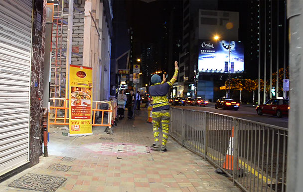Performance realizado en la avenida Queen's Road de Hong Kong, conocida por ser el corazón comercial y financiero de la ciudad.