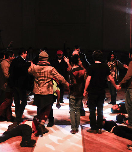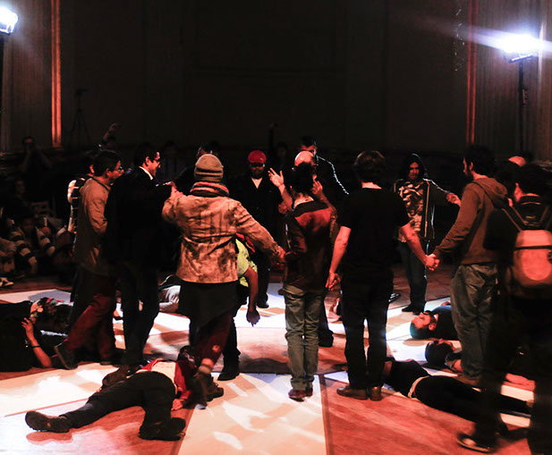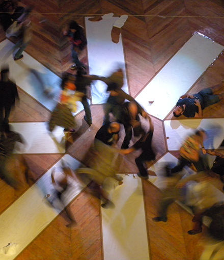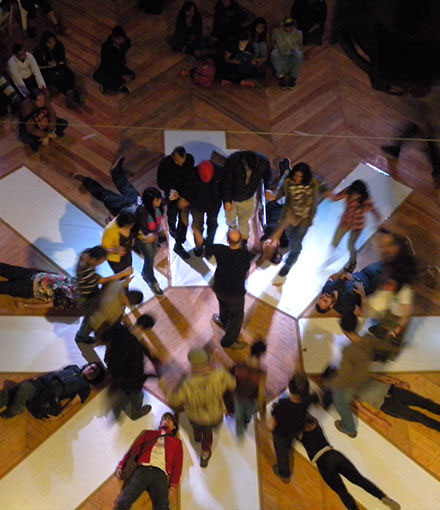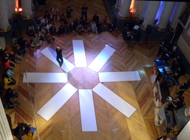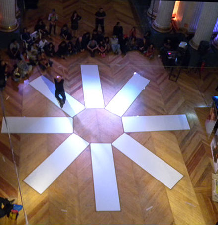 Este dispositivo radial ubicado debajo de la gran cúpula de Ex Teresa pretende crear una turbina sonora a partir de la activación individual y colectiva del mecanismo sensor analógico sonoro, propiciando la participación del público hasta llegar a la licuadora de carne; la gente corriendo alrededor de los participantes que se fueron recostando en los instersticios de la turbina, hasta llegar al caos y el desmantelamiento de la maquinaria aceleradora.