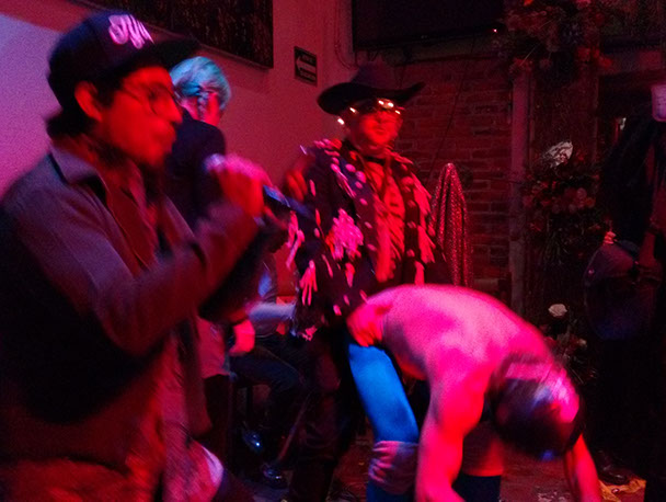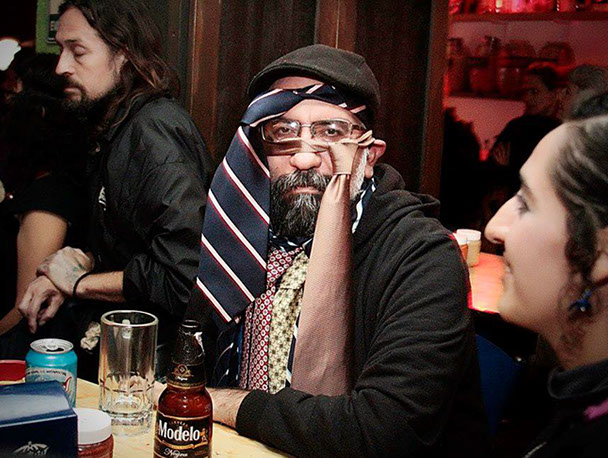Con motivo del fallecimiento del artista neólogo Felipe Ehrenberg, se reunió un nutrido grupo de artistas de la acción a rendir uno de varios homenajes postumos al célebre neólogo. En 1995, Felipe realizó una acción durante el intercambio México-EUA "Terreno Peligroso" que consistía en dar una conferencia mientras se colocaba una infinidad de corbatas hasta quedar casi estrangulado por ellas, una especie de crítica al oficialismo en todos los ámbitos que evoco en este momento de oficialización de la memoria y el legado de un artista fallecido, recordando su aportación a la escena mexicana.