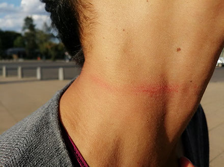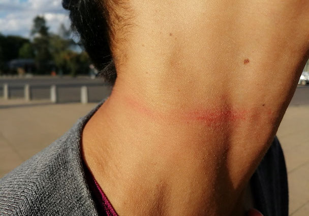 Límites. Estadio Olímpico, Berlín. Cuello de Mayra lastimado por el cordón.