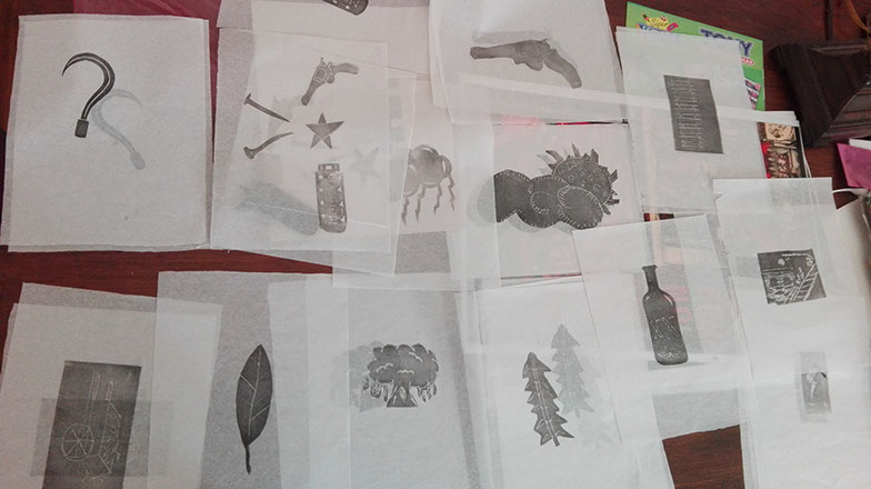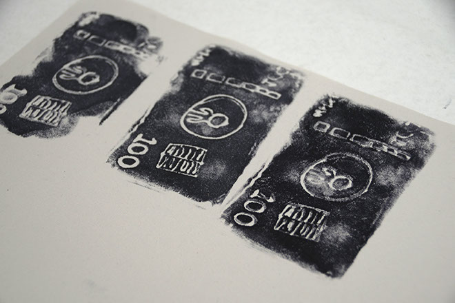 Estampado de los sellos y grabaditos para la intervención.