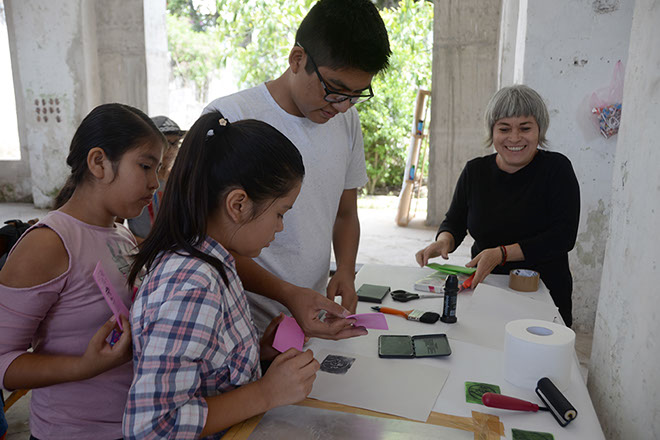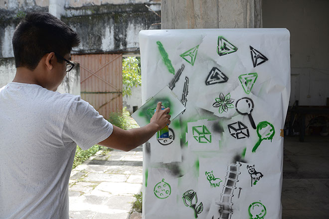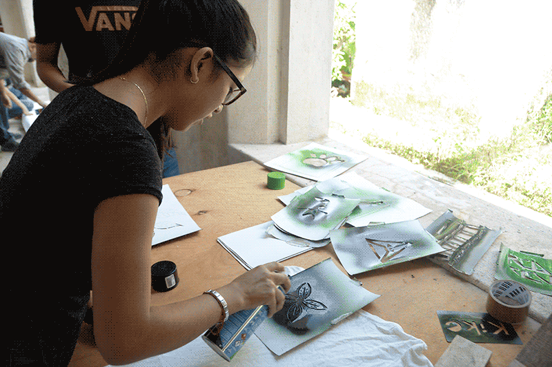 Se exploraron técnicas de intervención en espacio público como lo son el esténcil, el papel encolado o wheatpaste (o wetpaste) y la creación de estampados y sellos con materiales accesibles y técnicas básicas de estampa.