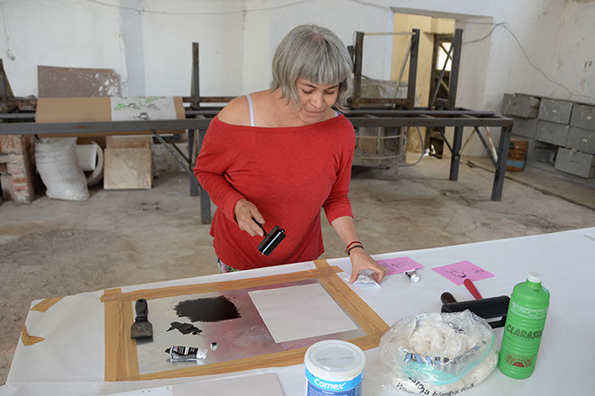 Berenice Torres preparando la impresión.