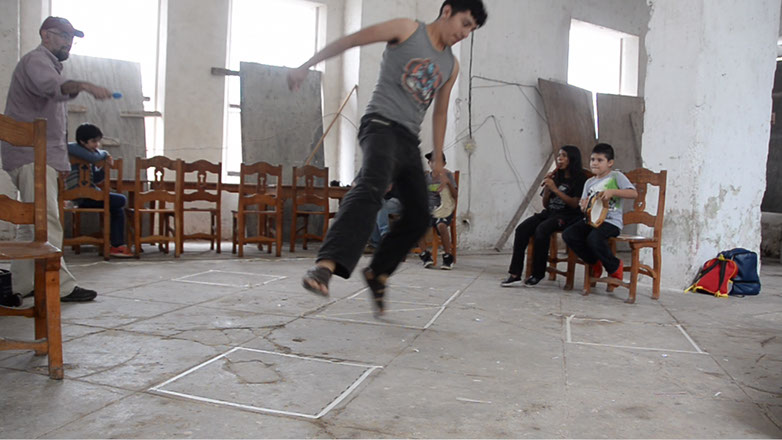 Cosmódromo Hacienda. Dispositivo de organización sonora e improvisación corporal. Controlando los parámetros de altura del sonido.