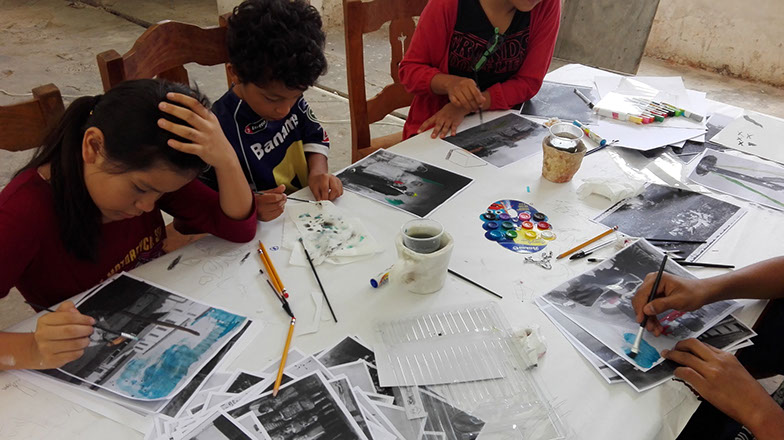 Otra actividad encaminada a la animación fue utilizar fotocopias de las fotografías antiguas para colorearlas y recortarlas para crear collages animados y dar vida a las memorias viejas y nuevas.